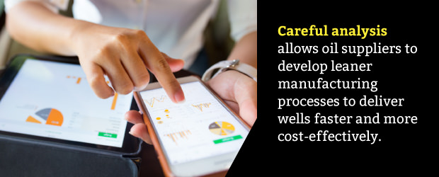 - Process improvement: After oil well delivery is complete, the final step is to analyze the well execution and production to identify areas for process improvement in the future. Careful analysis allows oil suppliers to develop leaner manufacturing processes to deliver wells faster and more cost-effectively.